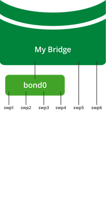 In the example below, the front panel port interfaces swp1 thru swp4 are slaves in bond0, while swp5 and swp6 are not part of bond0.