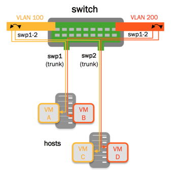 cumulus@switch:~$ net add bridge bridge vids 100,200