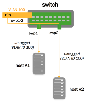 In the configuration below, swp1 and swp2 are configured as access ports, while all untagged traffic goes to VLAN 100: