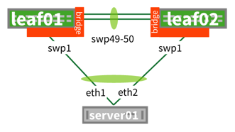 Bond and Etherchannel are not configured on host to multiple switches (bonds can still occur but only to one switch at a time), so leaf01 and leaf02 see two different MAC addresses. |