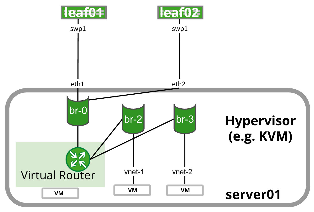Routing on the host means there is a routing application (such as FRRouting, either on the bare metal host (no VMs or containers) or the hypervisor (for example, Ubuntu with KVM). This is highly recommended by our Professional Services team. |