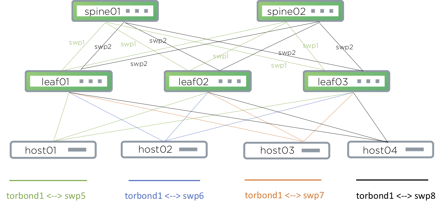 cumulus@switch:~$ net add bond hostbond1 bond slaves swp5