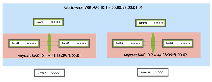 address-virtual(MAC address) for the SVI corresponding to the layer 3 VNI. Use the same address on both switches in the MLAG pair. Use the MLAG system MAC address. See Advertise Primary IP Address.