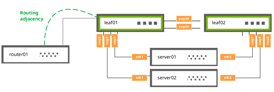 sudo ifreload -acommand to apply all the configuration changes:cumulus@leaf02:~$ sudo ifreload -a