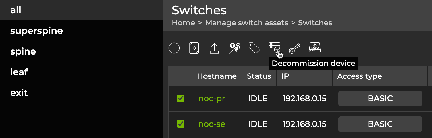 To decommission a switch or host: