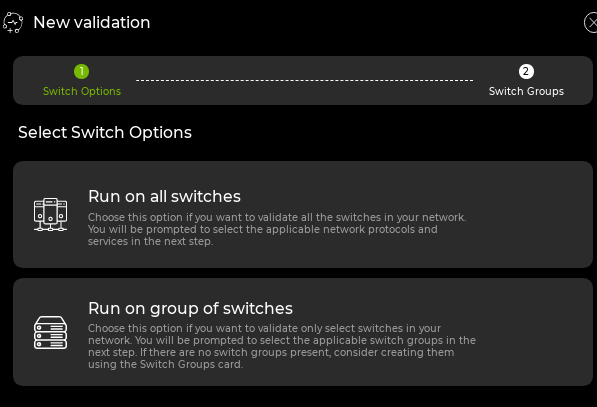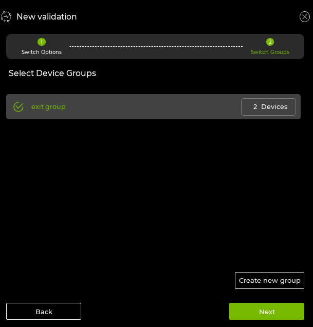 Validation, then click Create a validation. Choose Run on group of switches: