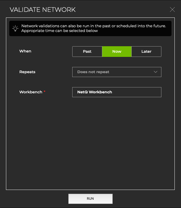 Choose whether to run the validation now or schedule it for another time, then click Run.