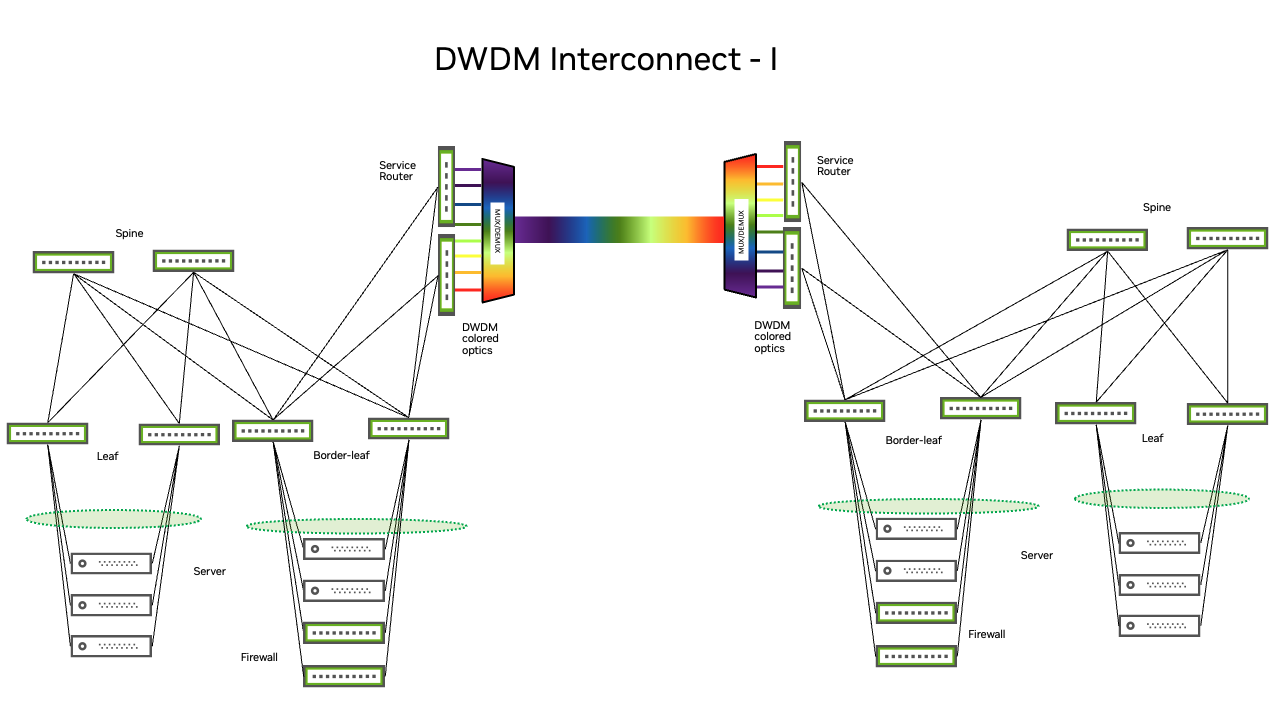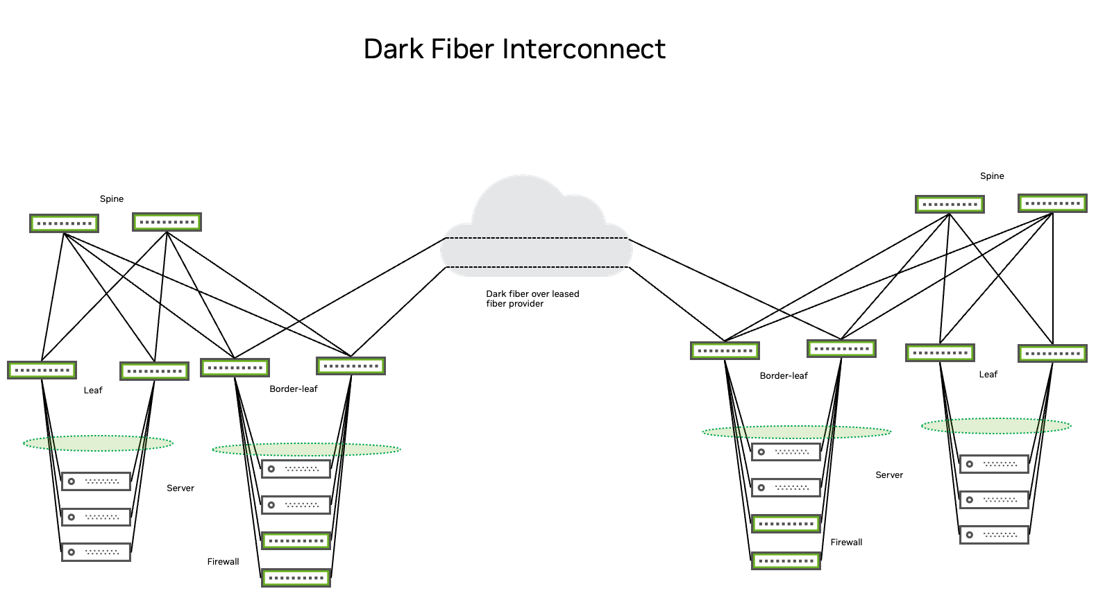 There are several ways to interconnect the physical layer of multiple data centers. The most popular deployment strategies include dark fiber interconnect and dense wavelength division multiplexing (DWDM) interconnect.