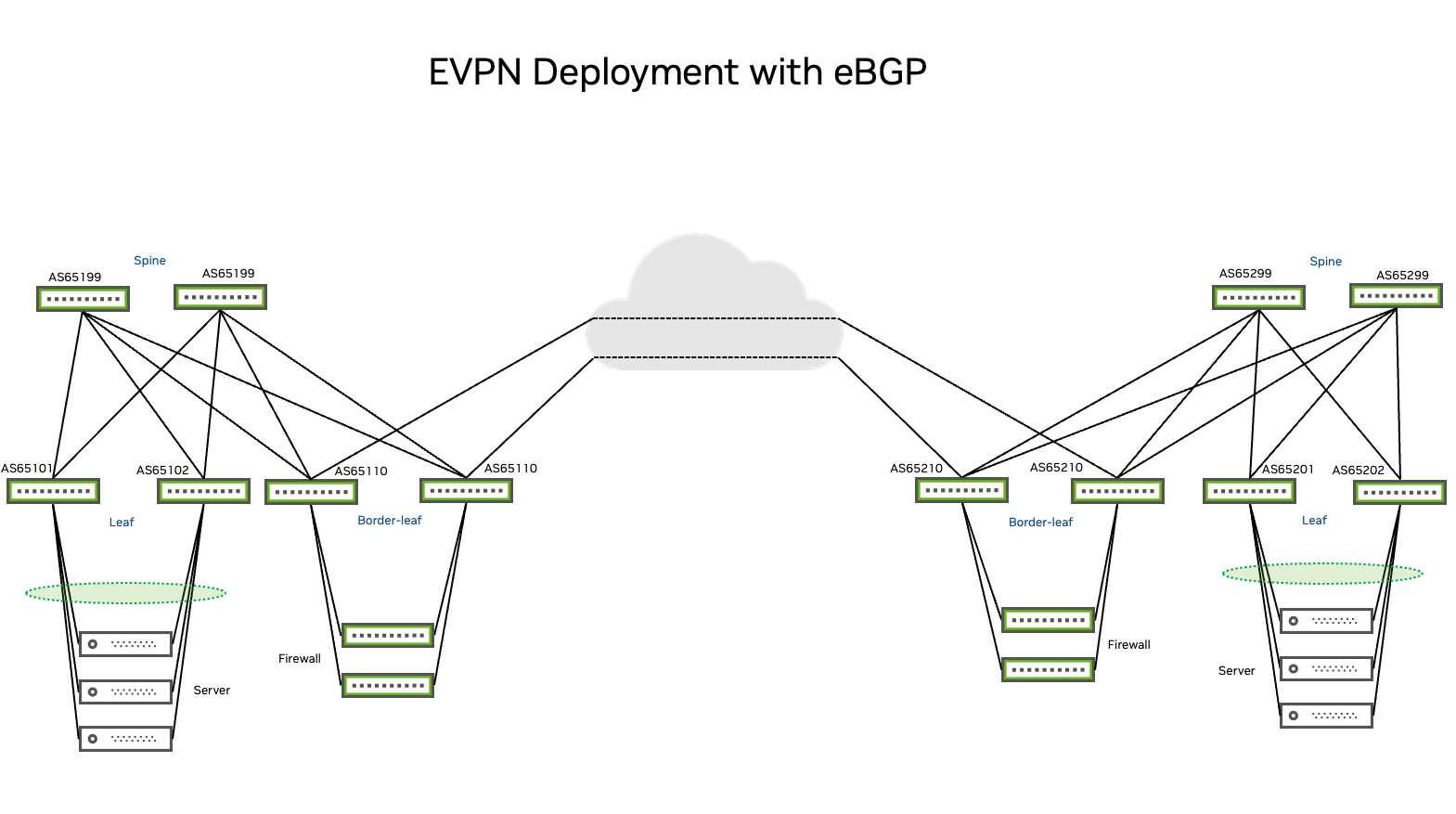The configuration examples use the NVUE Object Model and NVUE CLI to set an all-active-server-redundant environment with EVPN multihoming to configure an EVPN fabric with standardized layer 2 redundancy on ToR (top-of-rack) switches. All PODs that this document references belong to the same administrative domain or are under the same organization. This document does not address interconnects of different fabrics belonging to different administrative domains. The design on each POD is orthogonal to the other.