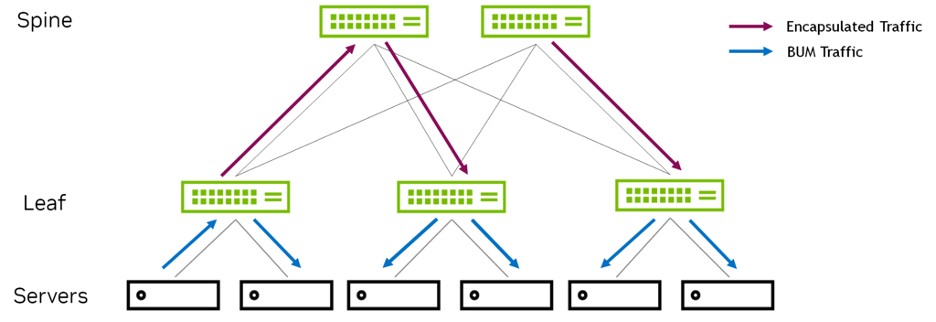 - The replication bandwidth required from the underlay can be high, especially if there are lots of BUM packets.