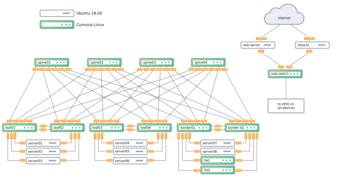 - One Cumulus Linux 3.7 out-of-band management switch (oob-mgmt-switch)